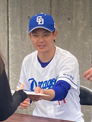 誰のサインがいただけるのかワクワクしながら待っていたら、今年限りでの引退を表明した岡田投手でした。これで岡田投手のユニホーム姿が見られなくなると思うと寂しい限りでしたが、サインをいただき、お疲れさまでしたと声をかけさせてもらいました。