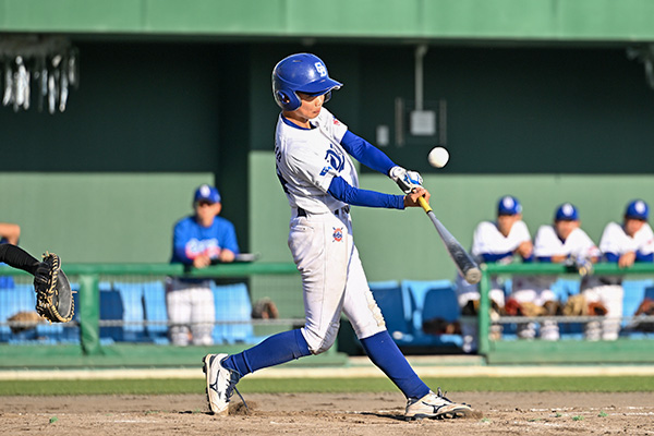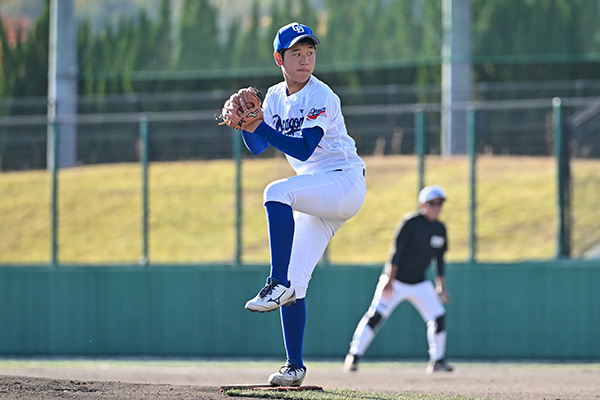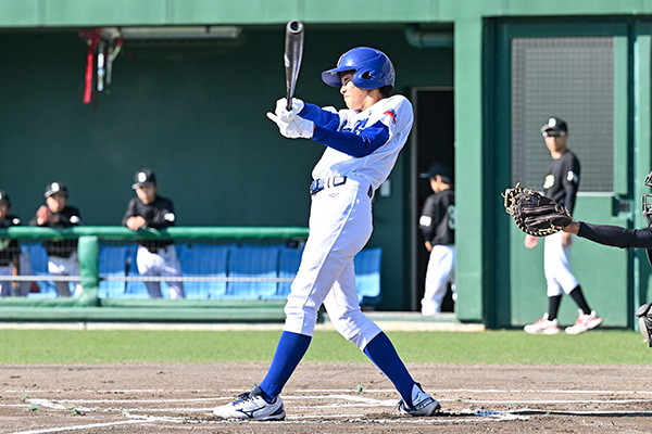 試合前に2019年メンバーの小鎗稜也選手が激励に訪れました。