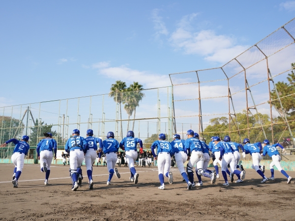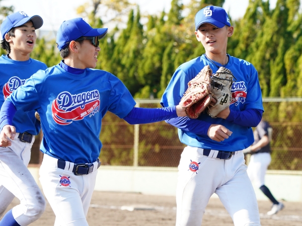 遠征最後の試合、古谷選手の声出しで気合を入れるドラゴンズナイン