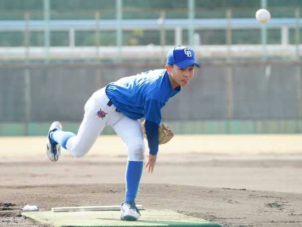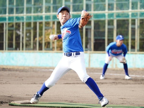 遠征最後の試合はバファローズジュニアと対戦、先発の尾本選手、初回に連打で無死一、二塁としますが後続を抑え無失点で切り抜けると、2回以降はノーヒットピッチングを披露。