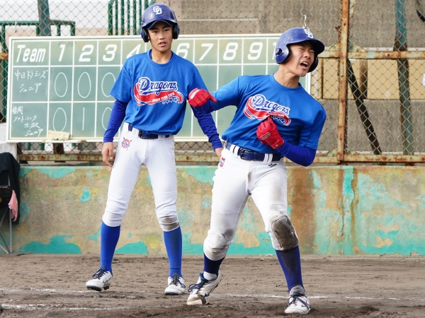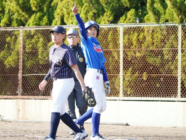 4回裏に無死満塁のチャンスを作ると向島選手のタイムリーヒットで2点を先制、その後はバファローズジュニアに守備のミスが重なり、この回一挙に6点を奪います。