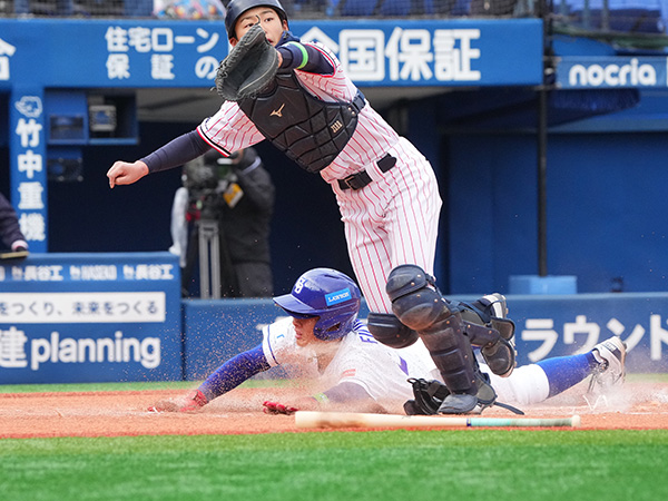 好走塁を見せ勝ち越しのホームを踏んだ藤沢選手