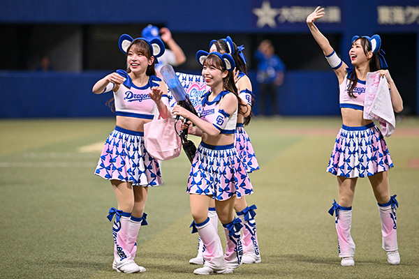 バンテリンドーム ナゴヤでの公式戦および球団主催地方試合や球場イベント・ステージなどに出演し、ファンサービスやパフォーマンスでチーム・お客様を全力で盛り上げるほか、メディア・SNS・各種イベントへの出演、さらには学校訪問・地域交流活動など様々な場所で活躍しています。