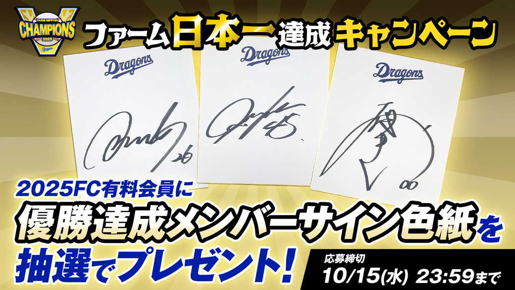 【ファーム日本一達成キャンペーン】2025FC有料会員に抽選で優勝達成メンバーサイン色紙をプレゼント!