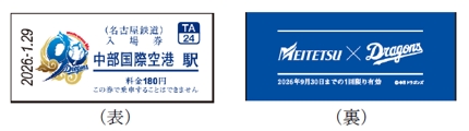 出発式が開催される1月29日(木)に、中部国際空港駅内にて特設ブースを設け、数量限定の中日ドラゴンズ90周年を記念した特別バージョンのコラボ硬券入場券のほか、オリジナルグッズを販売します。