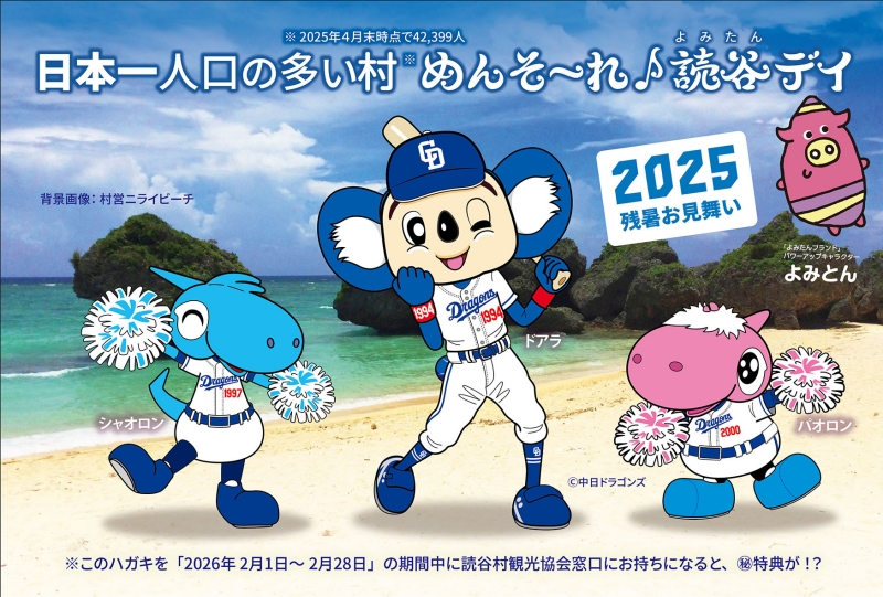 2025年7月21日バンテリンドーム ナゴヤで行われた「日本一人口の多い村 めんそ~れ♪読谷デイ」で配布した「残暑見舞いポストカード」をご提示された方限定で、特製オリジナルステッカーをプレゼント!ファンの皆さまがお帰りになられるの、読谷村はまっちょーたんどー!!(待ってたよー!)