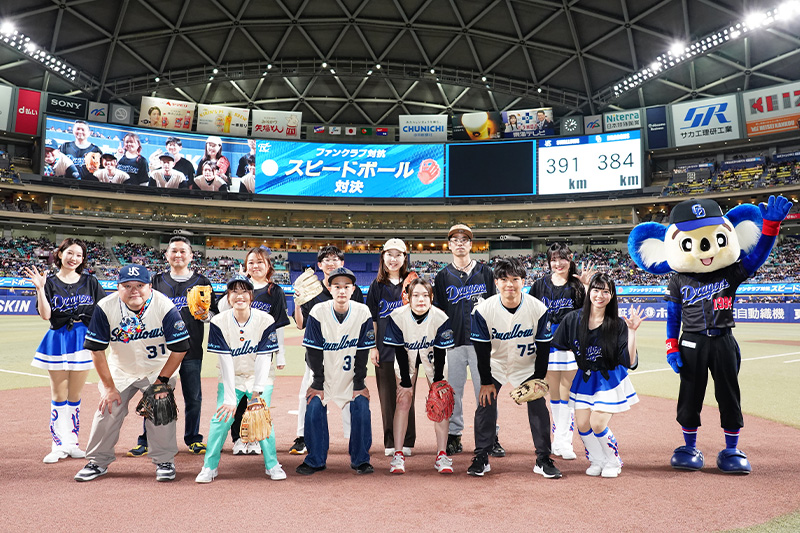 事前応募で当選した両チームのファンクラブ会員5名様に、マウンドから順番に投球いただき、球速の合計を競いました。