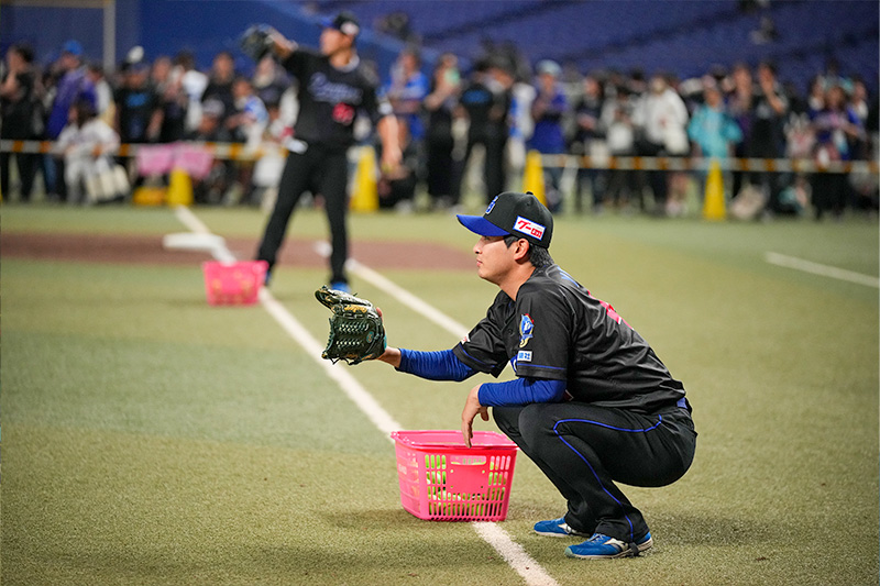 内野では、吉田投手と牧野投手が登場し、ファンクラブ会員のみなさまとキャッチボールを行いました。