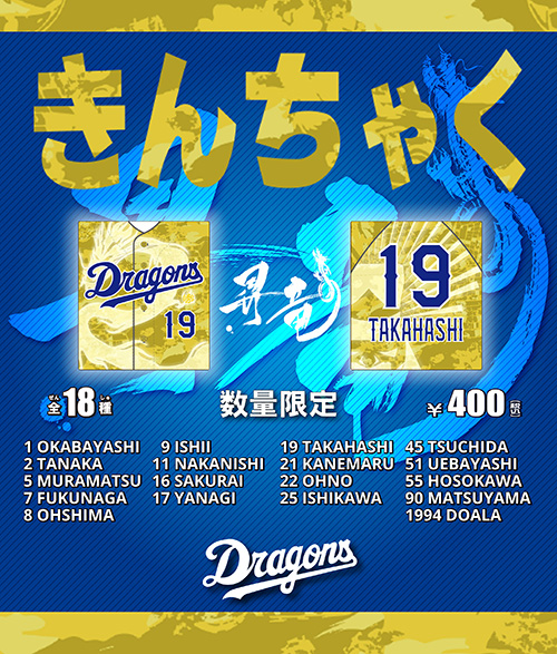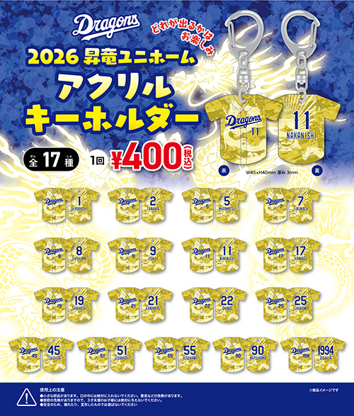 4月30日(木)横浜DeNA戦にて「昇竜きんちゃく」「昇竜アクリルキーホルダー」の野球ガチャを販売いたします。