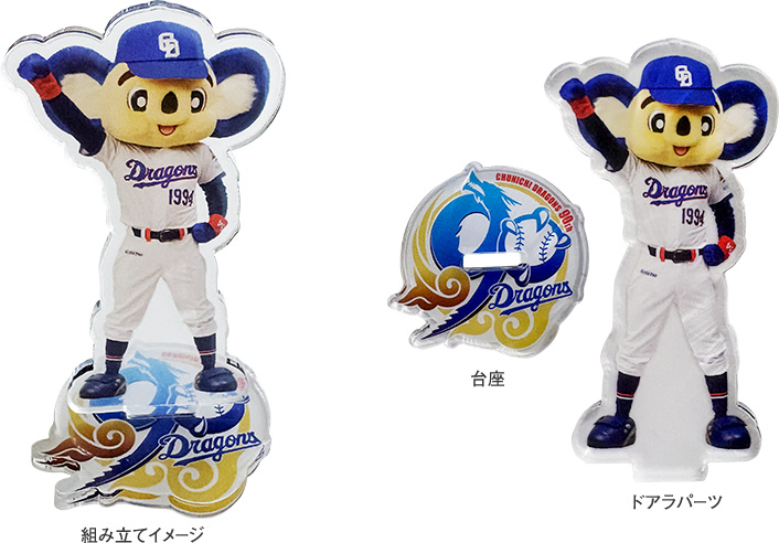 球団創設90周年ロゴの台座に気合の入ったドアラでデザインされたアクリルスタンド。