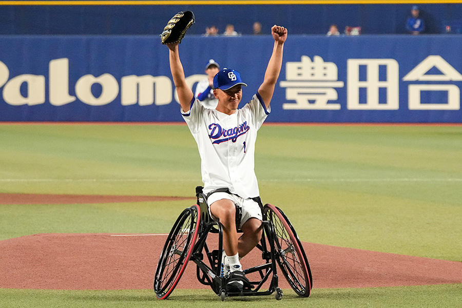 3月31日本拠地開幕戦の始球式は愛知県出身でプロ車いすテニスプレーヤーの小田凱人さん