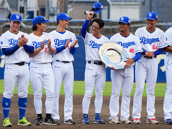 9月28日にナゴヤ球場で行われたウエスタン・リーグ公式戦、今季最終戦となったソフトバンク戦、勝てば優勝という試合に2−1で勝利し、2011年以来14年ぶりのリーグ優勝を決めました。
