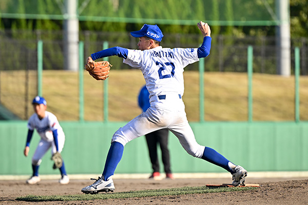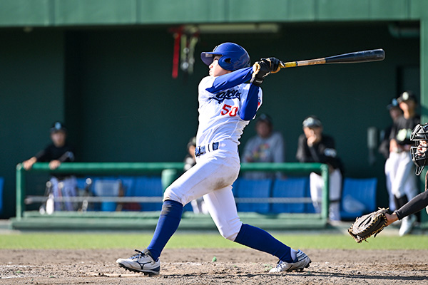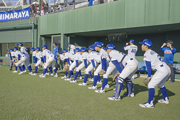 試合前に2019年メンバーの小鎗稜也選手が激励に訪れました。