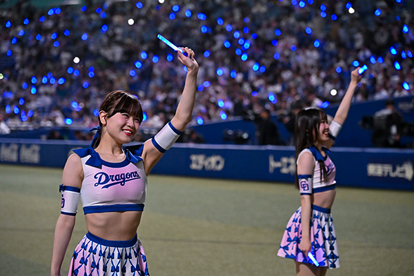 バンテリンドーム ナゴヤでの公式戦および球団主催地方試合や球場イベント・ステージなどに出演し、ファンサービスやパフォーマンスでチーム・お客様を全力で盛り上げるほか、メディア・SNS・各種イベントへの出演、さらには学校訪問・地域交流活動など様々な場所で活躍しています。