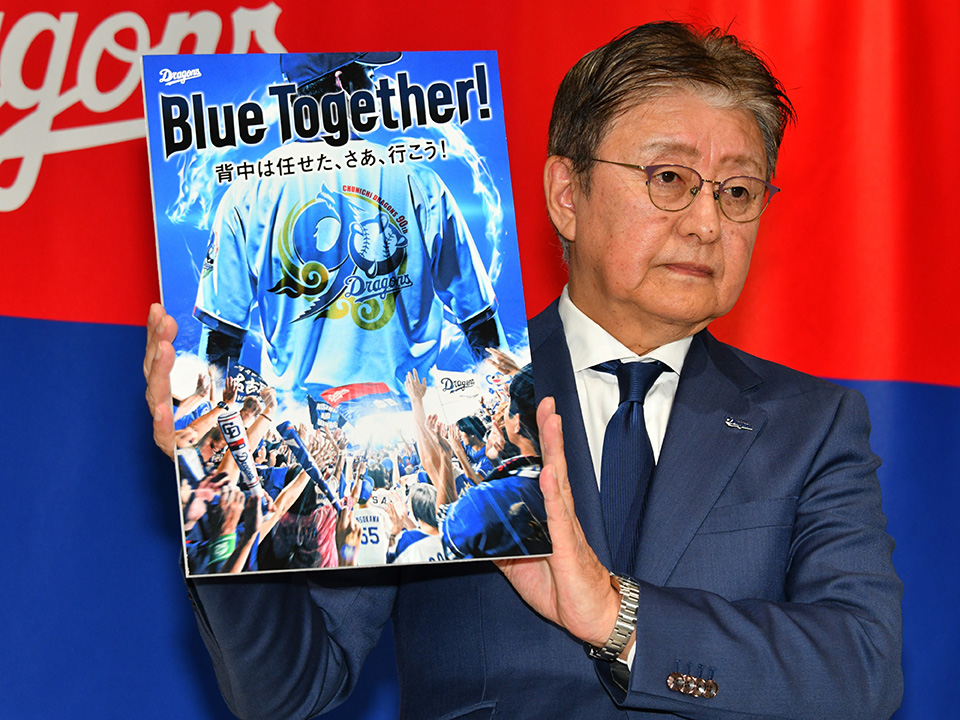 キャッチコピー「Blue Together」には、これまでも、そしてこれからも、中日ドラゴンズは皆さまと共に戦い、ともに歩んでいくという揺るぎない想いを込めました。