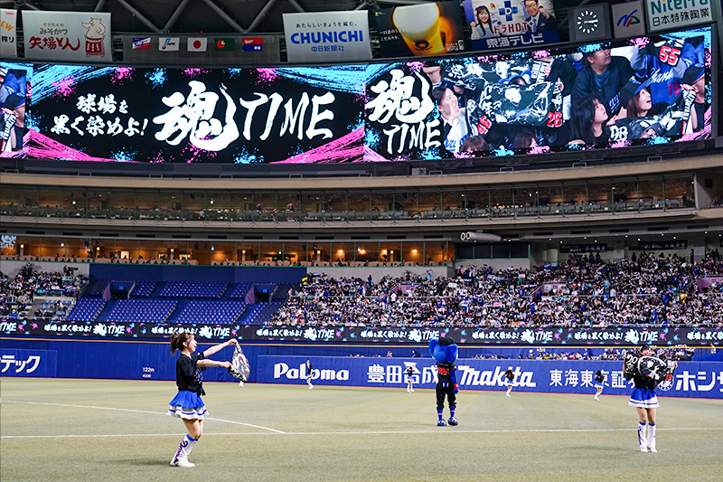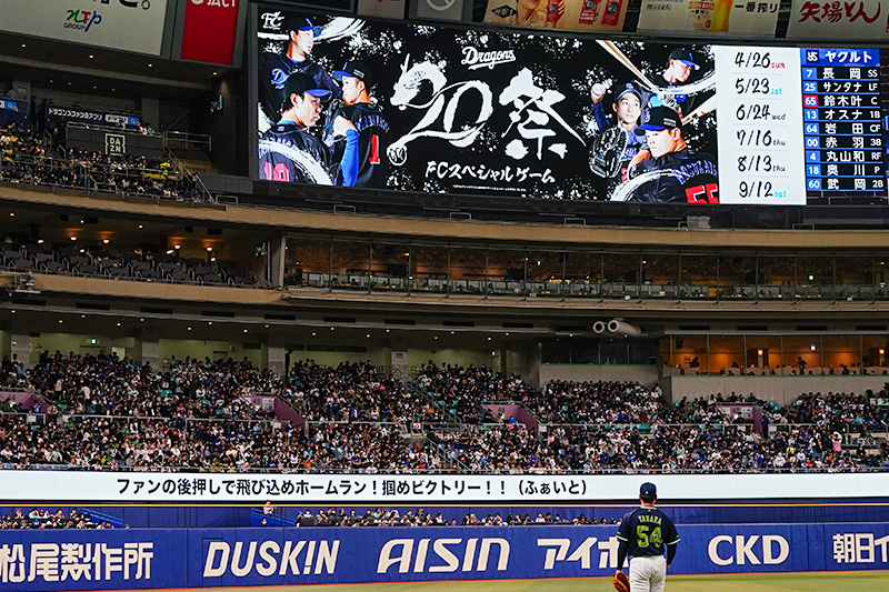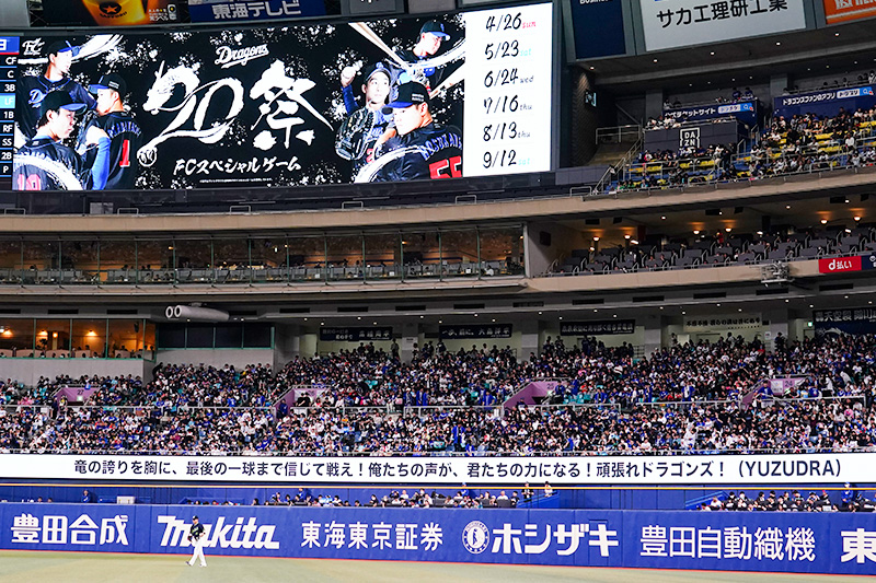 今年からできたフェンスビジョンに、ファンクラブ会員から募ったドラゴンズへのメッセージを流しました。