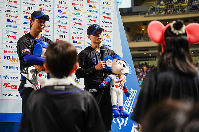 ドラゴンズ勝利!ジュニア会員によるキッズヒーローインタビューを実施!