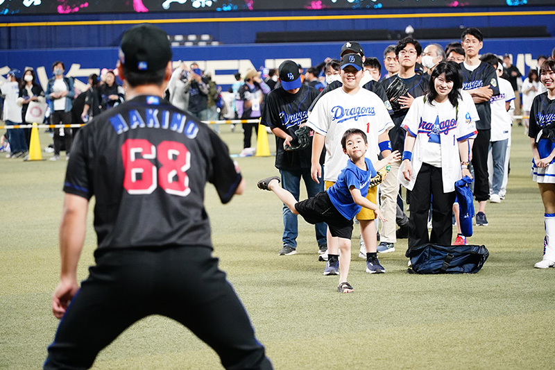内野では、吉田投手と牧野投手が登場し、ファンクラブ会員のみなさまとキャッチボールを行いました。