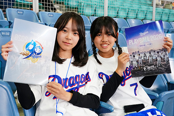 3月31日は『DRAGONS 90th ANNIVERSARY ペンライト』、4月1日は『DRAGONS 90th ANNIVERSARY クリアファイル』、2日は『DRAGONS 90th ANNIVERSARY アクリルスタンド』をオープニングシリーズ 2026では来場されたすべての方にプレゼントをしました。