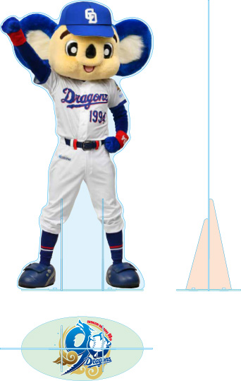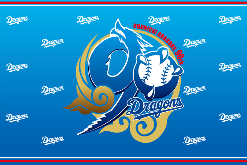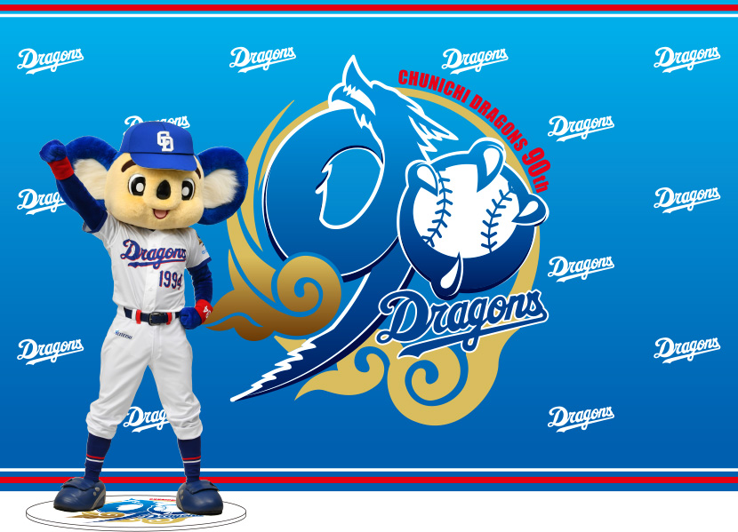 4月2日(木)の来場者プレゼント「DRAGONS 90th ANNIVERSARYアクリルスタンド」の巨大版のイメージです。ご来場記念にぜひお立ち寄りください。