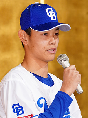 この一年間はまずはケガをせずに、体作りメインでしっかりプロで戦える体作りをして、数年後には中日でエースを取れるようなそういう選手になりたいと思います。