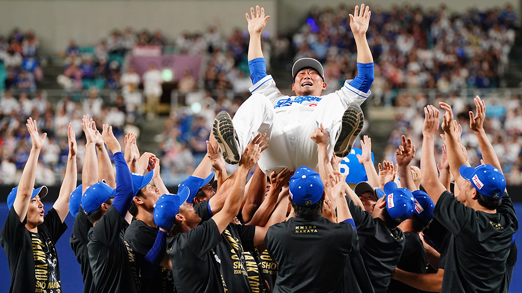 2008年に北海道日本ハムファイターズに入団し、その後は読売ジャイアンツ、中日ドラゴンズと3球団を渡り歩き、通算309本塁打、打点王3回、一塁手と外野手合わせて5回のベストナイン、ゴールデングラブ賞も5回受賞するなど多くのタイトルを獲得、ファンからも「大将」のニックネームで親しまれた中田選手が18年のプロ野球人生に幕を下ろしました。